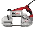 Milwaukee's Deep Cut Portable Band Saws have a cutting capacity of 4-3/4 in. x 4-3/4 in. With high torque and powerful motor this band saw will maintain a steady, optimum blade speed. The excellent balance, open line of sight and quick blade change system make this band saw easy to work with. Using an all ball and roller bearing construction, and worm gear and chain drive mechanism this tool is built to last. A self-lubricating system is used for maximum wear resistance and long life. No oiling is needed. Cuts up to 3-3/4-inches in rectangular and round stock Maintains a steady, optimum blade speed Features all ball and roller bearing construction; worm gear and chain drive mechanism Includes 14-tooth blade and product manual 5-year limited warranty