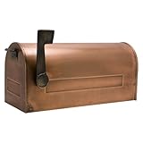The traditional shape of this post mount mailbox is updated by a sleek Antique Copper finish with Brass accents. Handcrafted from 24 gauge copper. Available in two sizes: Standard mailbox measures overall: 7-3/4" L x 19-3/4" W (front to back) x 9" H. Oversized mailbox measures overall: 10-1/4" L x 23" W (front to back) x 12" H. Antique Copper finish with Brass accents. No two mailboxes are alike, as they are produced by hand. Expect variations in finish and slight variations in dimensions (± 1/2").